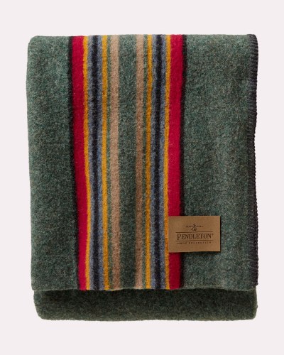 Made-in-America wool camp throw that’s one of our most popular. Camp blankets were originally used by shepherds to brave the elements of the Pacific Northwest—right where our rugged wool versions are still woven today. These smaller sized blankets make a great gift for outdoor enthusiasts. Stripes run vertically.